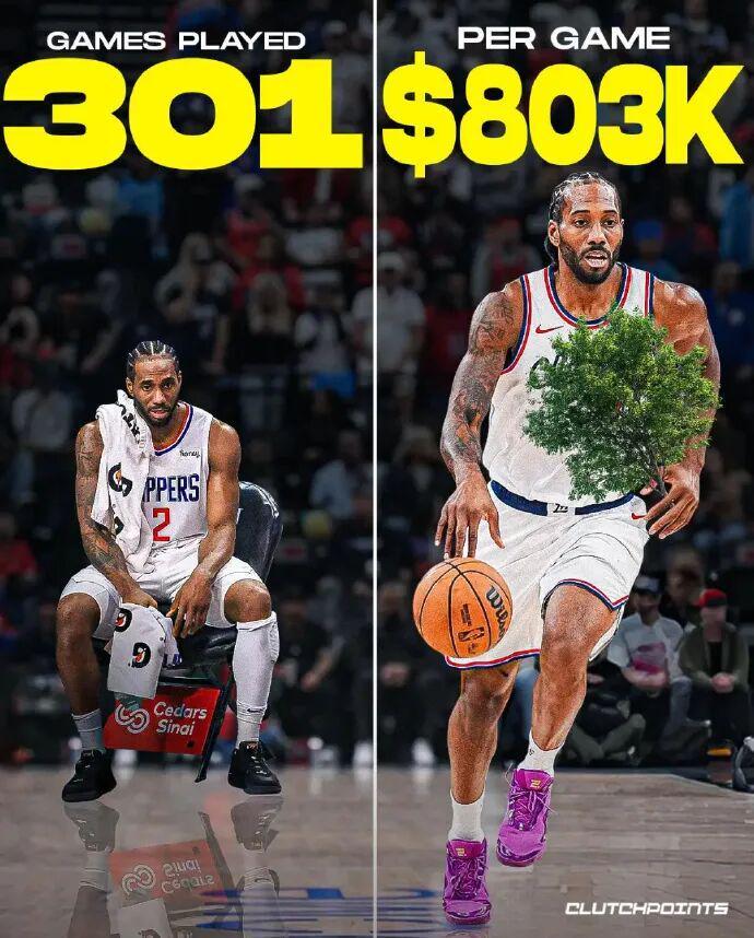 人家鲍尔默够惨了,伦纳德在快船这些年, 在总计472场常规赛中,只出战了266场, 获得2.417亿美元薪资,未来两个赛季他还将获得1.003亿美元,快船啥也没有……